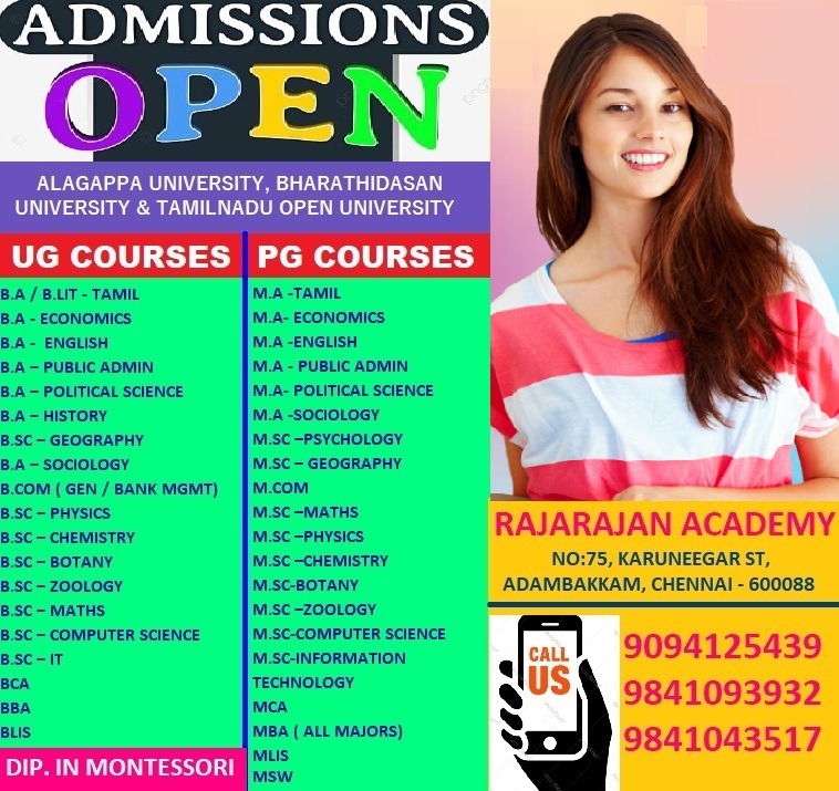 ADMISSION OPEN FOR ALL UG & PG COURSES IN DISTANCE EDUCATION, CHENNAI CT: 9094125439 / 9841093932