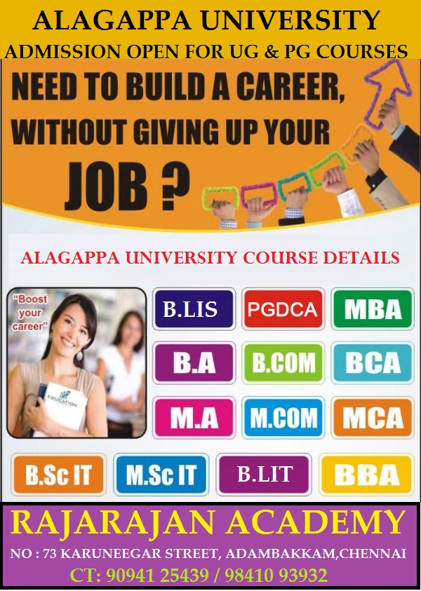 ALAGAPPA UNIVERSITY UG ( ALL MAJORS) IN DISTANCE EDUCATION, CHENNAI CT:90941 25439 / 98410 93932