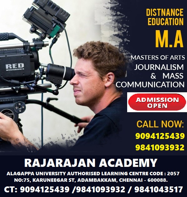 M.A ( JOURNALISM) IN DISTANCE EDUCATION, CHENNAI CT: 9094125439 / 9841093932